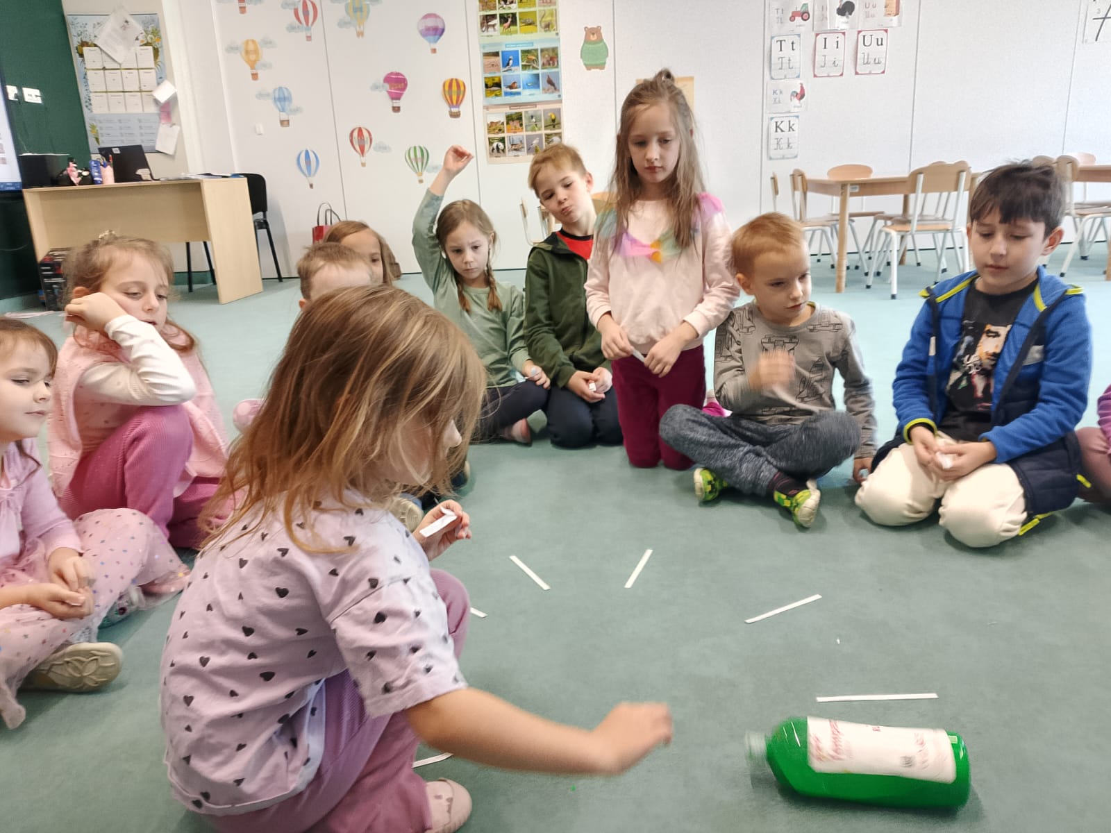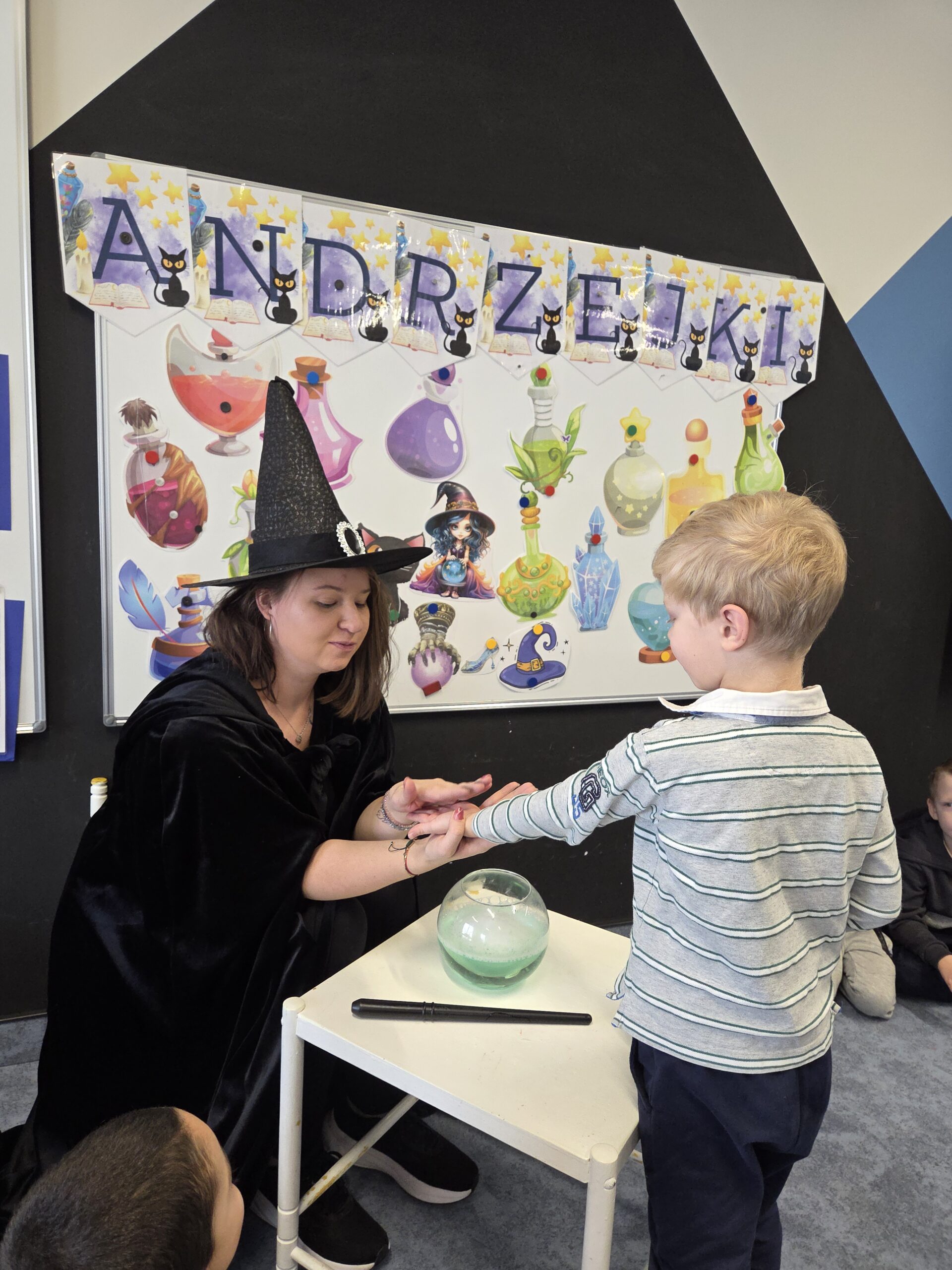 W tym roku nasze przedszkolne Andrzejki wyglądały nieco inaczej — bez tradycyjnego lania wosku, ale za to z wieloma ciekawymi aktywnościami. Dzieci wróżyły przy użyciu latarek, a migoczące światło tworzyło w pomieszczeniu tajemniczą atmosferę. Podążając za jego blaskiem, odkrywały, kim mogą zostać w przyszłości, jakie przygody je czekają i jakie niespodzianki może przynieść życie. Wykonywały także proste eksperymenty, bawiły się kolorową chustą animacyjną, a także uczestniczyły w tradycyjnych wróżbach, takich jak wróżba z butów czy wróżba z kubeczkami. Zabawy wprowadziły dzieci w aurę tajemnicy, wywołując przy tym mnóstwo radości i zdziwienia.