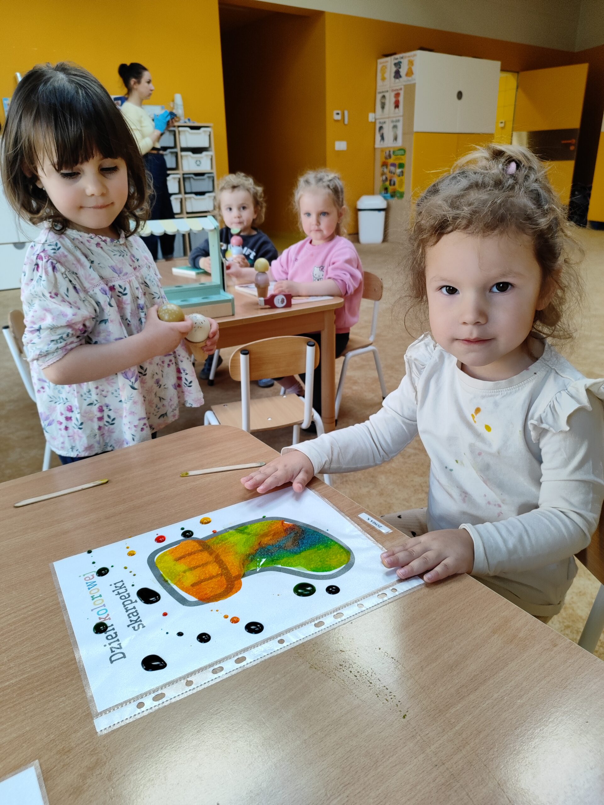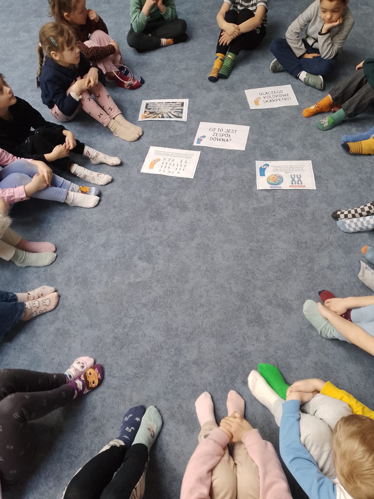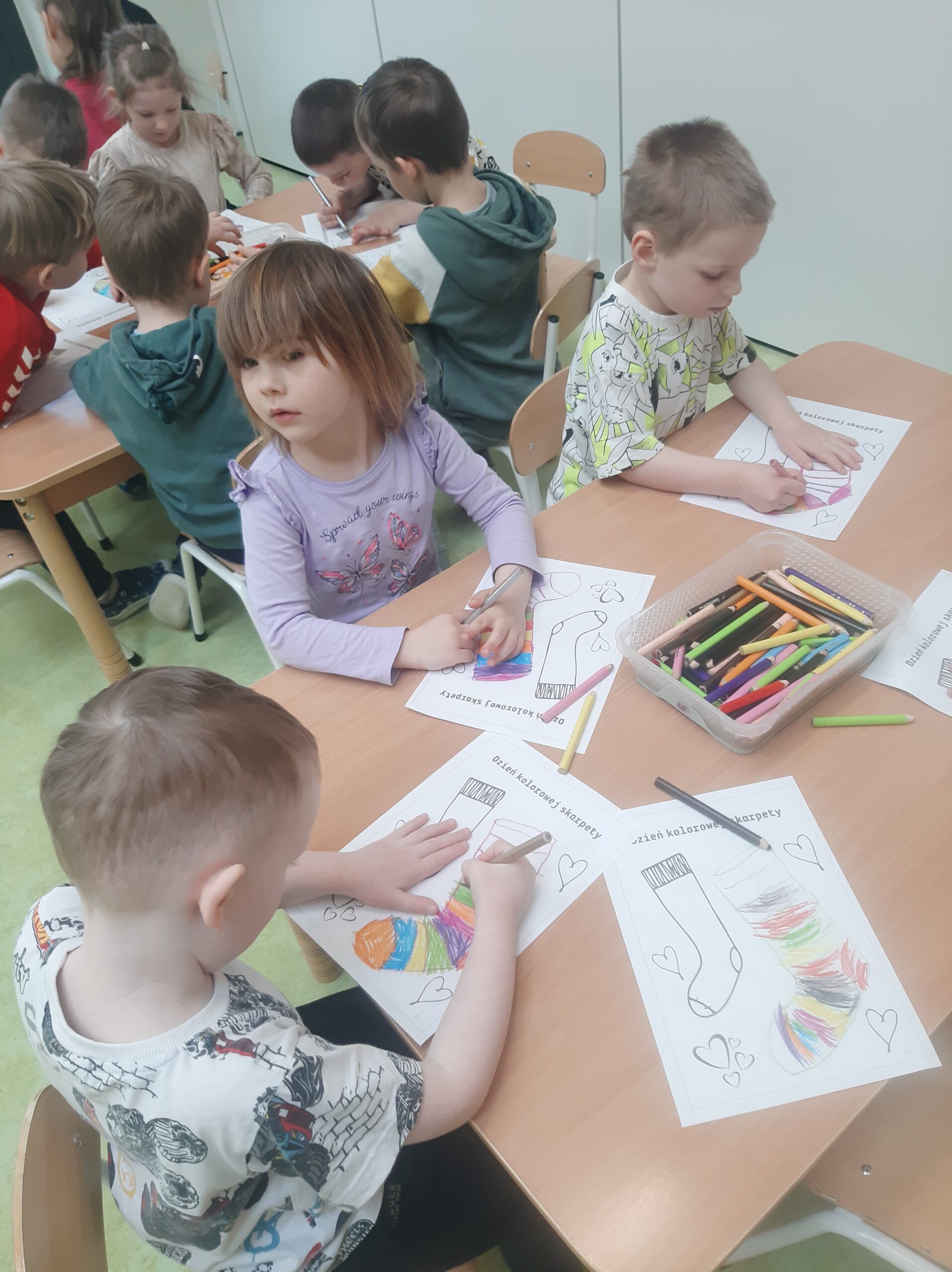 W poniedziałek, 23 marca, obchodziliśmy Dzień Kolorowej Skarpetki. Tego dnia dzieci przyszły ubrane w różne, kolorowe skarpetki – oczywiście nie do pary! Był to piękny gest wyrażający wsparcie dla osób z zespołem Downa oraz ich rodzin.