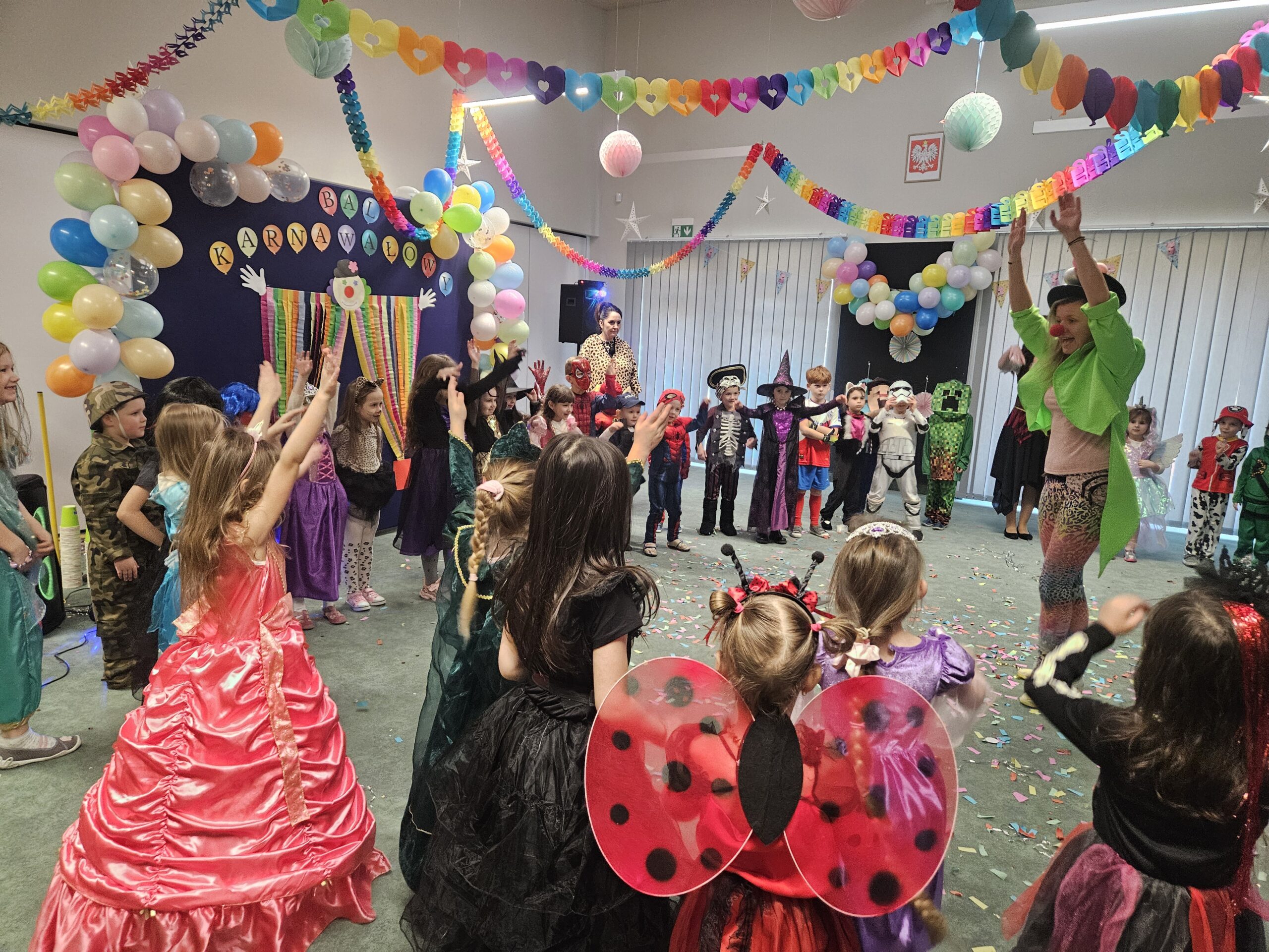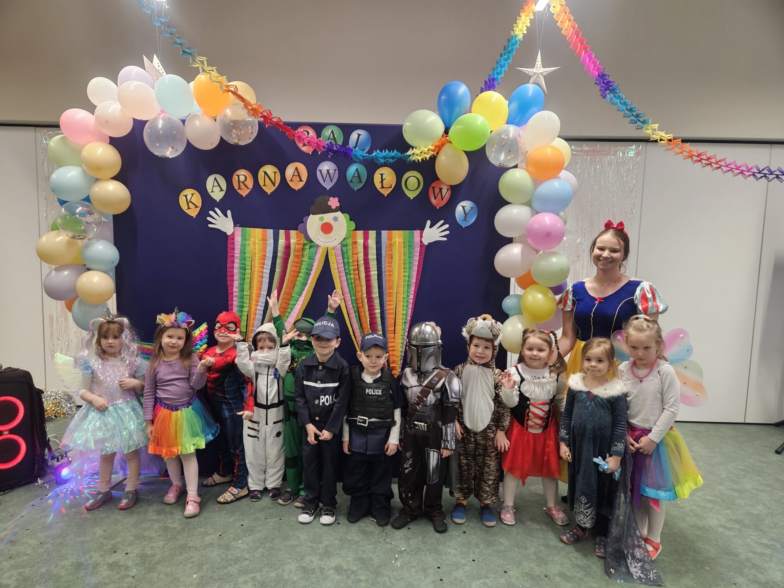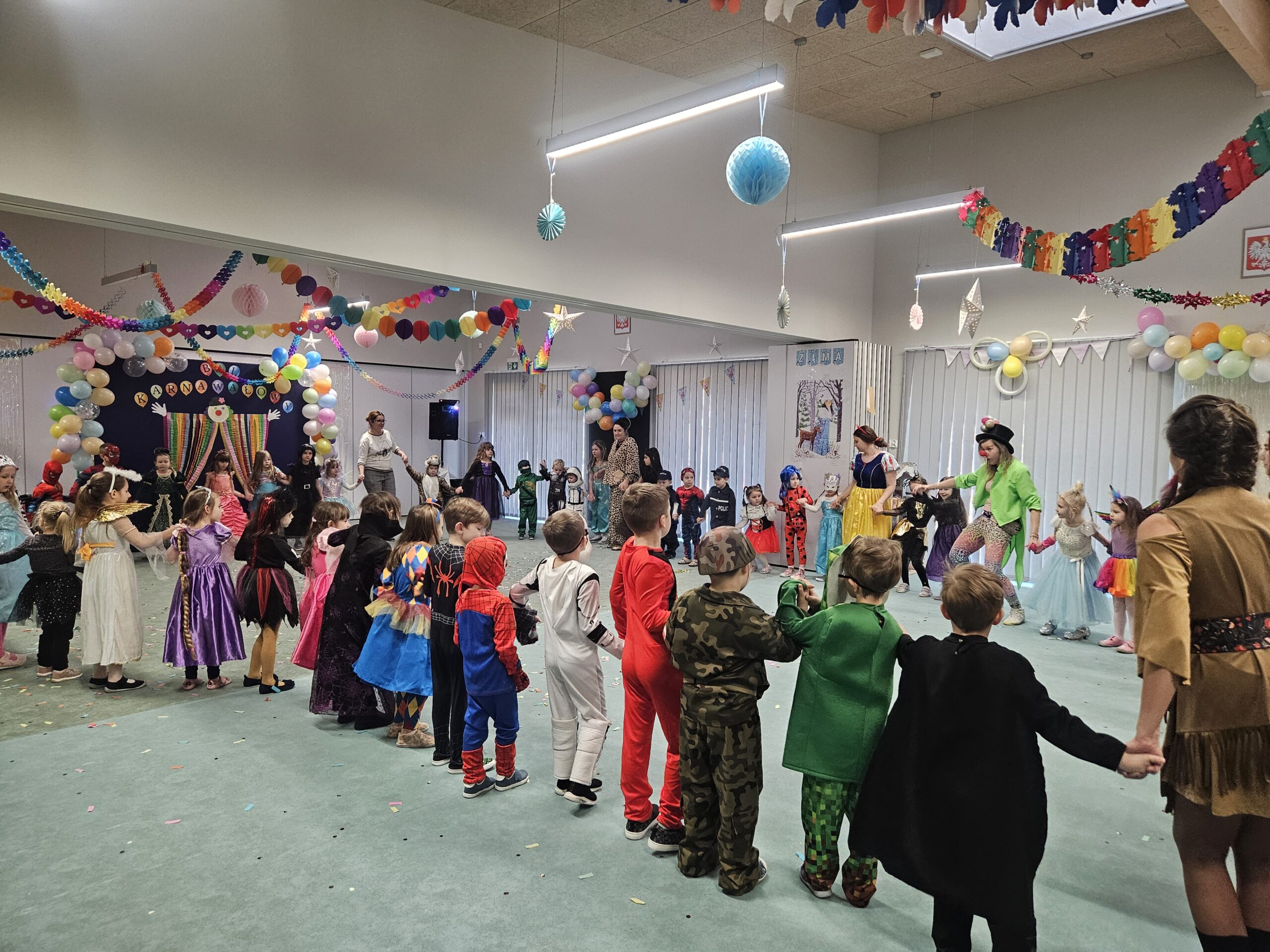 Karnawał to okres radosnych i hucznych zabaw, a bal karnawałowy w przedszkolu jest atrakcją bardzo lubianą i wyczekiwaną przez wszystkie dzieci. Nie dziwi więc fakt, iż przedszkolaki od dawna poruszały już temat zabawy, przede wszystkim zastanawiając się jakie przebrania szykują im rodzice… W końcu nadeszła ta chwila i w poniedziałek 10 lutego br. w naszym Przedszkolu odbył się wielki bal karnawałowy. Tego dnia już od rana w szatni pojawiały się kolorowe postaci. Dzieci przebrane były za bohaterów znanych bajek, w salach przedszkolnych można było spotkać wróżki, królewny, delikatne motylki, rycerzy, żołnierzy, piratów, superbohaterów… nie sposób zliczyć i wymienić tych wszystkich postaci. Piękny, kolorowy wystrój sali wprowadził wszystkich w radosny nastrój oraz zachęcał do wesołej zabawy. Kiedy pojawiły się pierwsze rytmy wesołej muzyki, to wszystkie przedszkolaki z wielką ochotą rozpoczęły pląsy i tańce. Wszyscy bawili się znakomicie. Były „tańce – łamańce”, „Pociąg”, „Makarena” i wiele, wiele innych… Kiedy zabawa dobiegła końca dzieci z żalem i z ociąganiem opuszczały salę balową. Bal ten był nie tylko okazją do wspaniałej zabawy, ale także sposobem na budowanie więzi między dziećmi, rozwijanie ich kreatywności i tworzenie niezapomnianych wspomnień. Było to wyjątkowe wydarzenie, które zarówno dzieci jak i pracownicy przedszkola z pewnością będą wspominać z uśmiechem na twarzy.