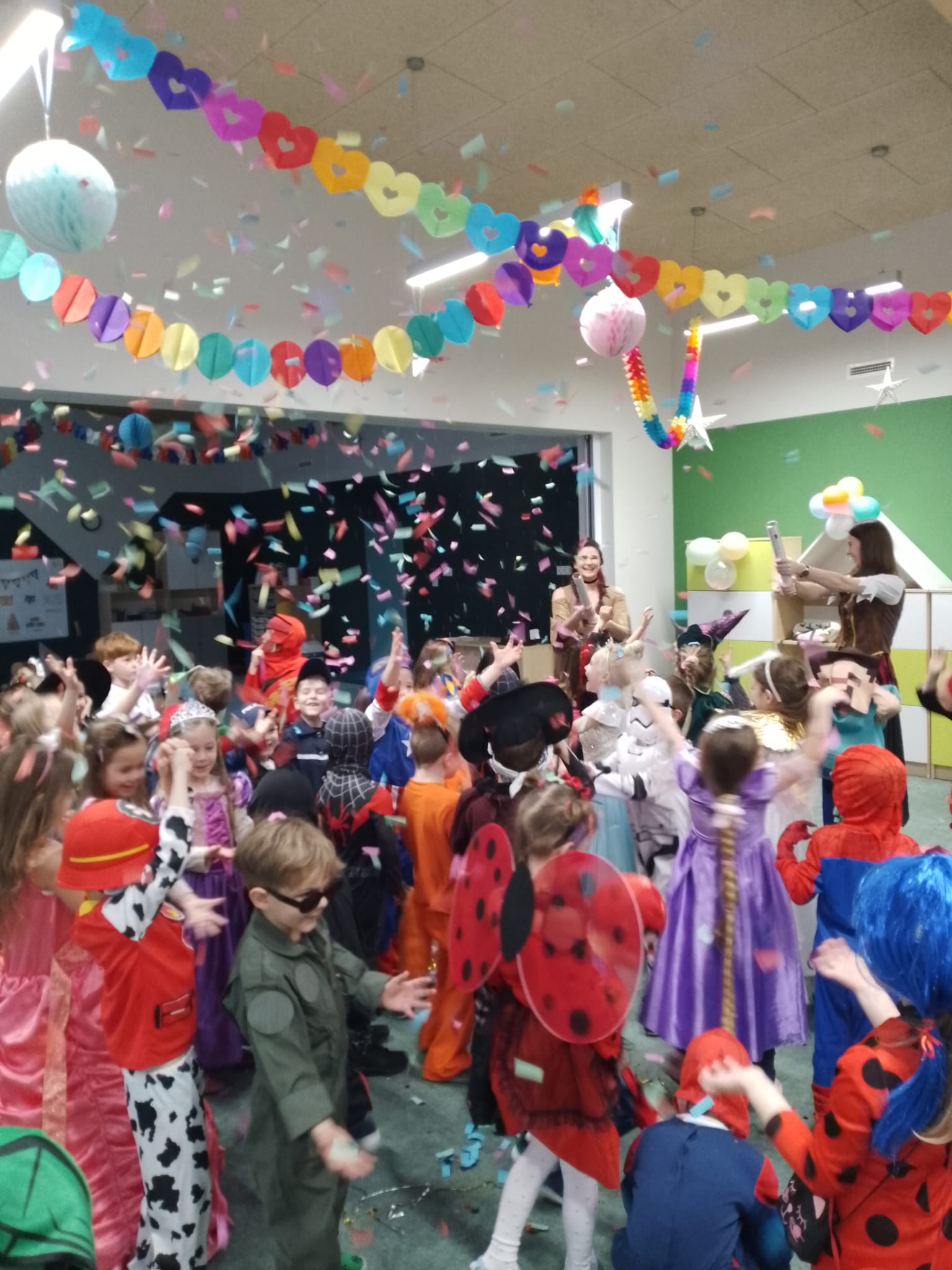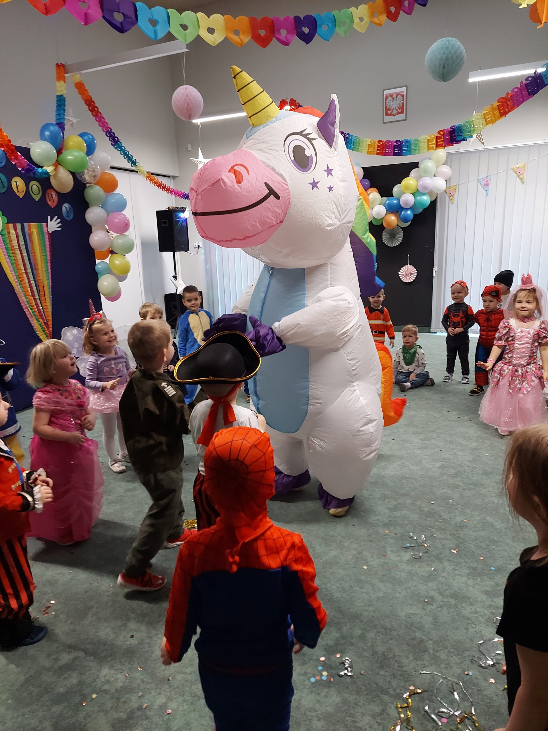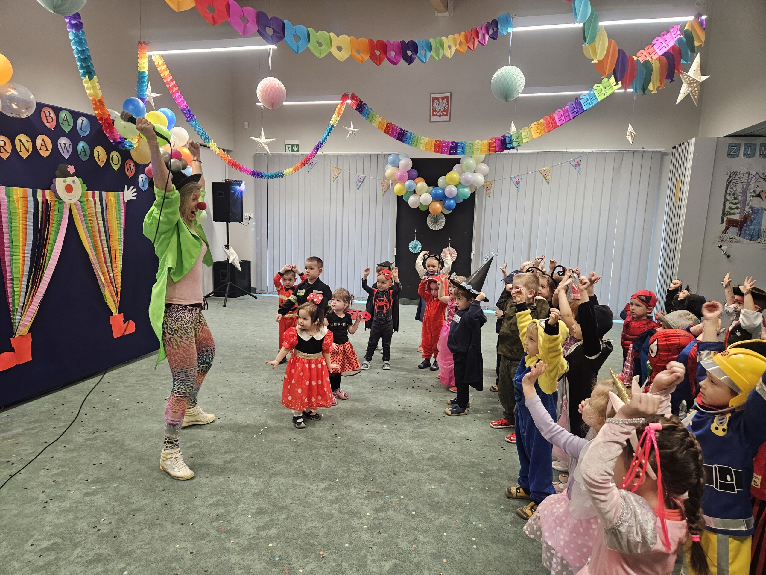 Karnawał to okres radosnych i hucznych zabaw, a bal karnawałowy w przedszkolu jest atrakcją bardzo lubianą i wyczekiwaną przez wszystkie dzieci. Nie dziwi więc fakt, iż przedszkolaki od dawna poruszały już temat zabawy, przede wszystkim zastanawiając się jakie przebrania szykują im rodzice… W końcu nadeszła ta chwila i w poniedziałek 10 lutego br. w naszym Przedszkolu odbył się wielki bal karnawałowy. Tego dnia już od rana w szatni pojawiały się kolorowe postaci. Dzieci przebrane były za bohaterów znanych bajek, w salach przedszkolnych można było spotkać wróżki, królewny, delikatne motylki, rycerzy, żołnierzy, piratów, superbohaterów… nie sposób zliczyć i wymienić tych wszystkich postaci. Piękny, kolorowy wystrój sali wprowadził wszystkich w radosny nastrój oraz zachęcał do wesołej zabawy. Kiedy pojawiły się pierwsze rytmy wesołej muzyki, to wszystkie przedszkolaki z wielką ochotą rozpoczęły pląsy i tańce. Wszyscy bawili się znakomicie. Były „tańce – łamańce”, „Pociąg”, „Makarena” i wiele, wiele innych… Kiedy zabawa dobiegła końca dzieci z żalem i z ociąganiem opuszczały salę balową. Bal ten był nie tylko okazją do wspaniałej zabawy, ale także sposobem na budowanie więzi między dziećmi, rozwijanie ich kreatywności i tworzenie niezapomnianych wspomnień. Było to wyjątkowe wydarzenie, które zarówno dzieci jak i pracownicy przedszkola z pewnością będą wspominać z uśmiechem na twarzy.