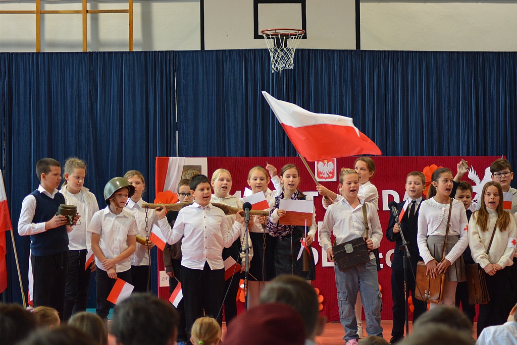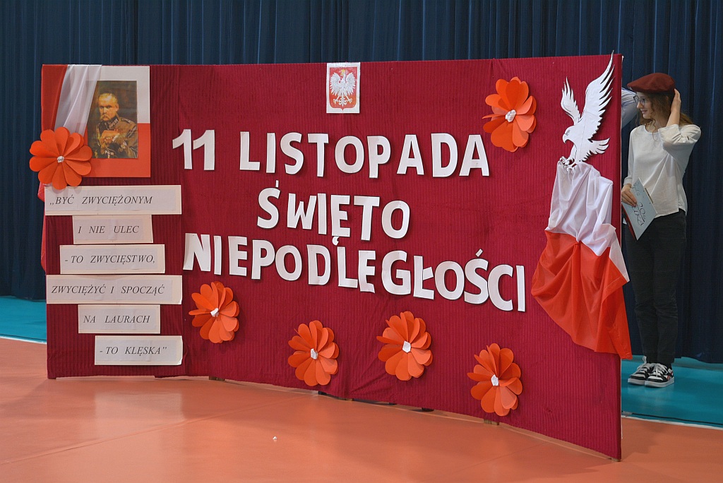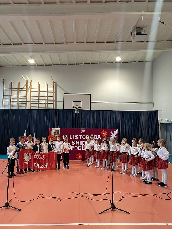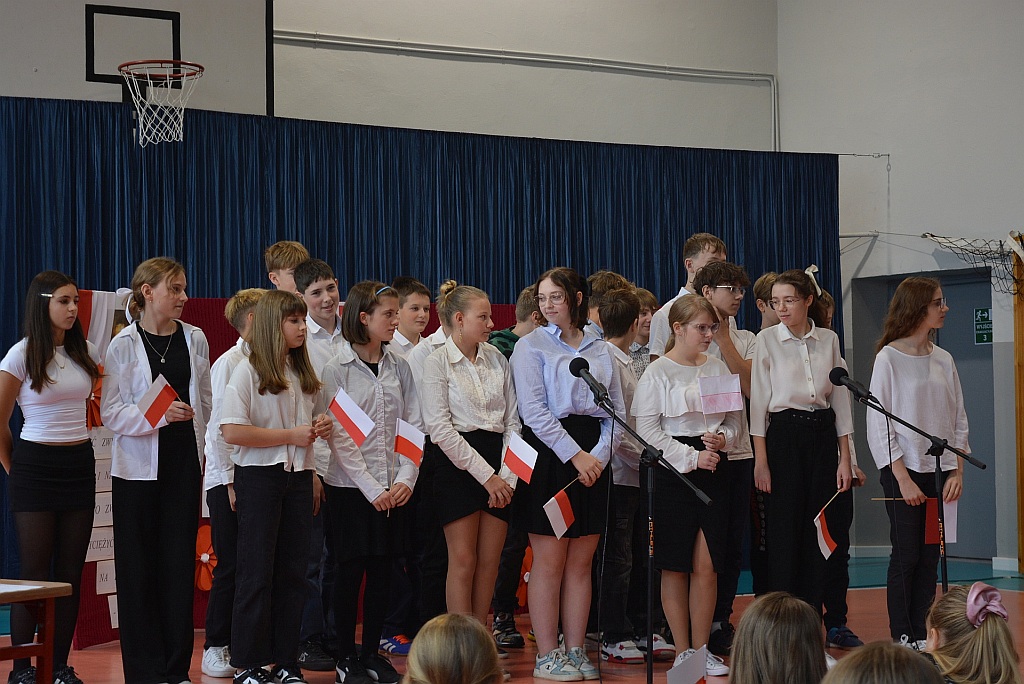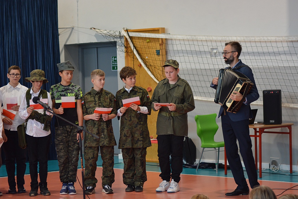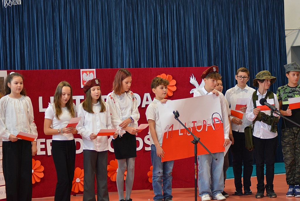 W piątek uczniowie naszej szkoły zgromadzili się na sali gimnastycznej aby wspólnie uczcić nadchodzące Narodowe Święto Niepodległości 11 Listopada. W ramach obchodów odbył się Uroczysty Apel oraz Szkolny Konkurs Pieśni Patriotycznych.