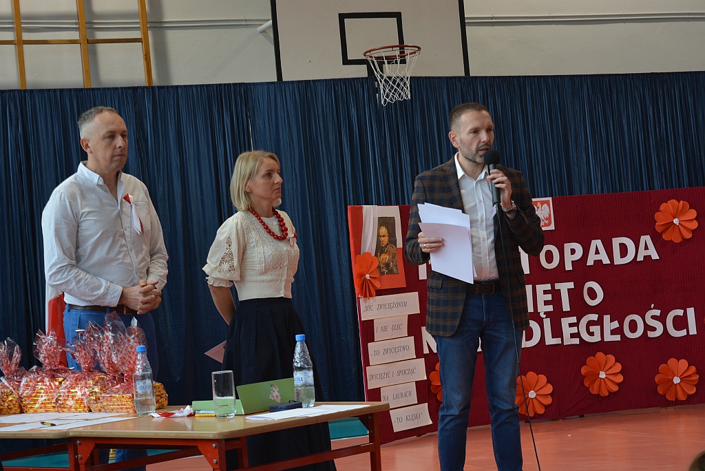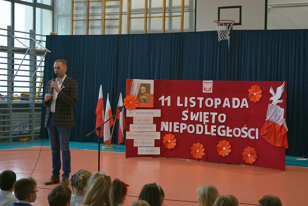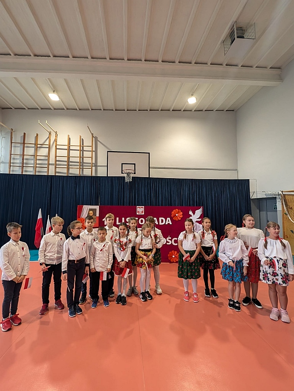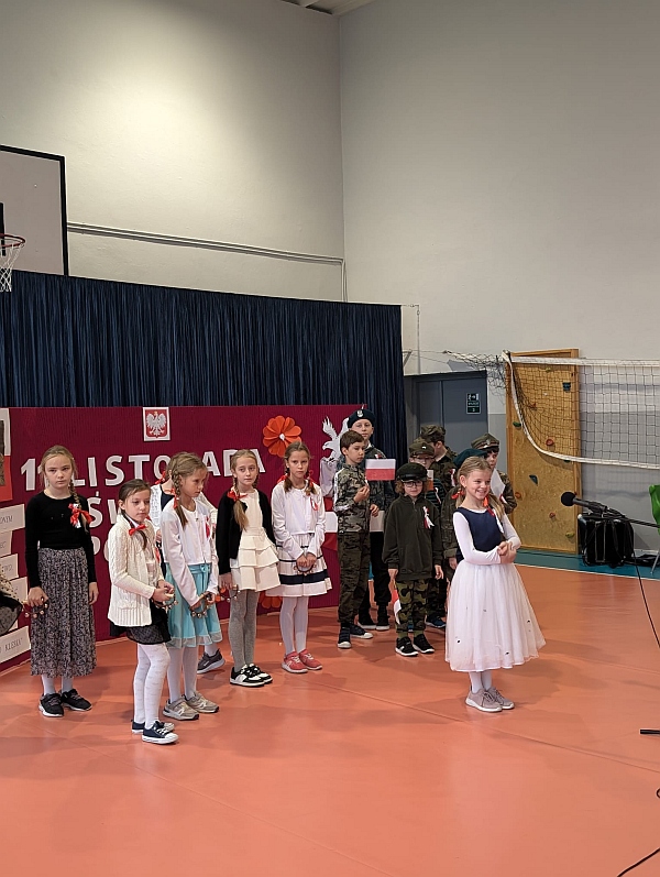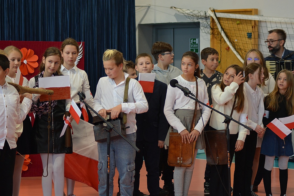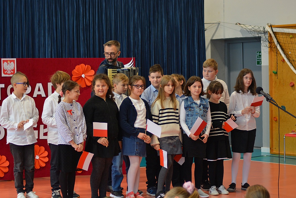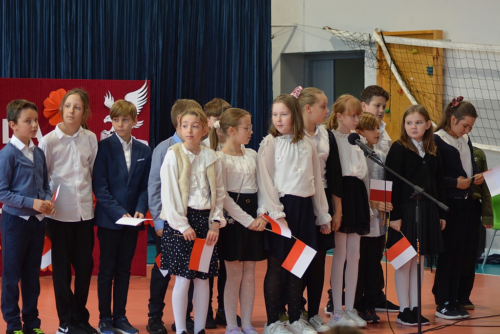 W piątek uczniowie naszej szkoły zgromadzili się na sali gimnastycznej aby wspólnie uczcić nadchodzące Narodowe Święto Niepodległości 11 Listopada. W ramach obchodów odbył się Uroczysty Apel oraz Szkolny Konkurs Pieśni Patriotycznych.