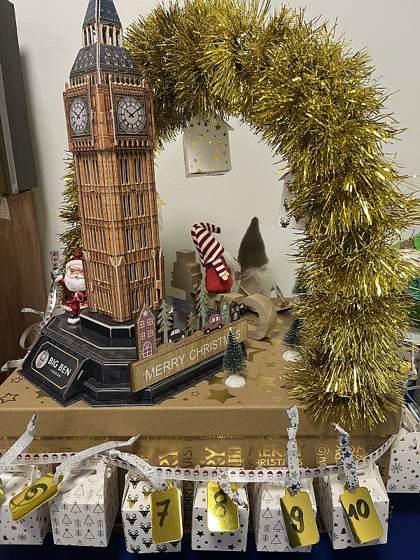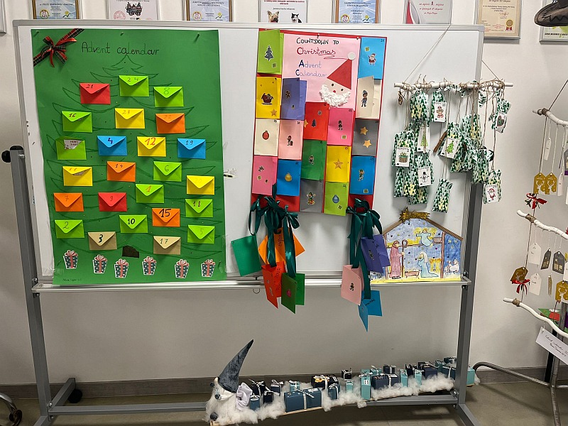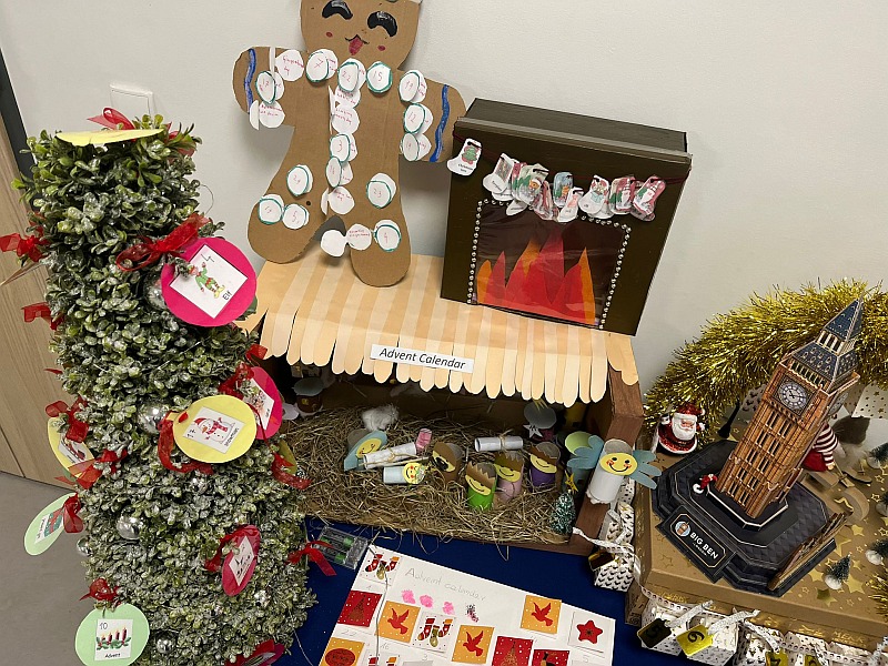 Zadaniem uczniów było wykonanie kalendarza adwentowego, w okienkach którego należało umieścić słowa lub zwroty związane ze świętami Bożego Narodzenia, tradycjami tego czasu oraz zimą – oczywiście w języku angielskim.