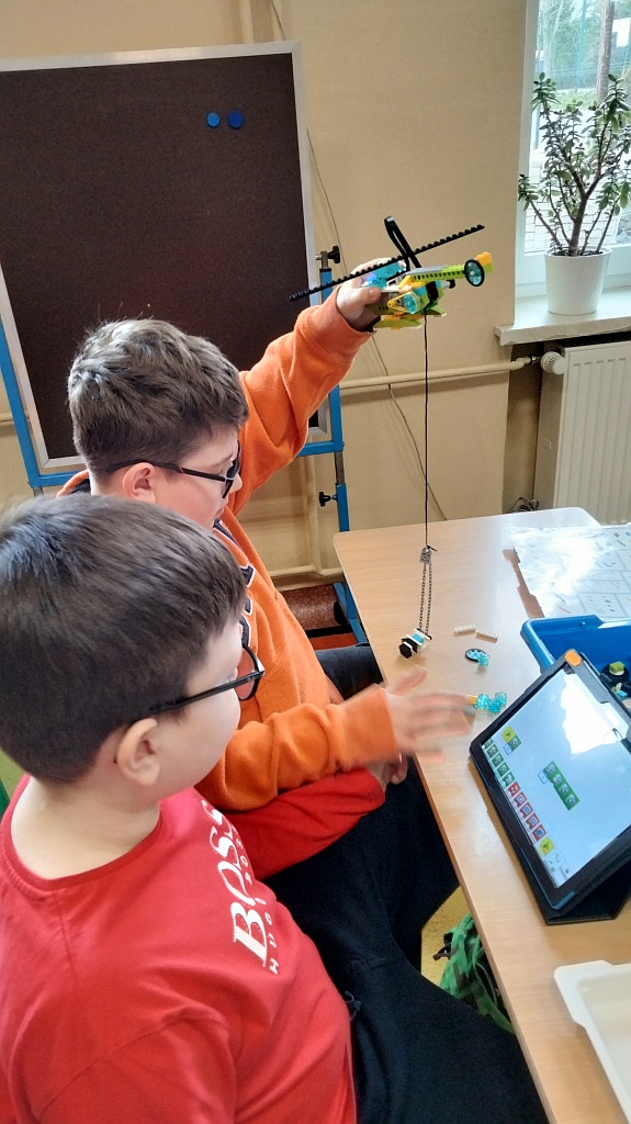 W marcu uczniowie klas trzecich zostali wprowadzeni w tematykę robotyki z wykorzystaniem klocków Lego Education We Do.2.0. Według instrukcji budowali turbiny wiatrowe wprowadzając je w ruch. Podczas realizacji zadania głównego – programowania obiektu (wprowadzenia turbiny w ruch) uczniowie skupili szczególną uwagę na dwa istotne aspekty dotyczące prezentacji – zmienność kierunku wiatru oraz jego (siły) natężenia. Kolejnym wyzwaniem był Milo the Science Rover czyli łazik rowerowy. Jego ruch uczniowie programowali w oparciu o matę do kodowania.