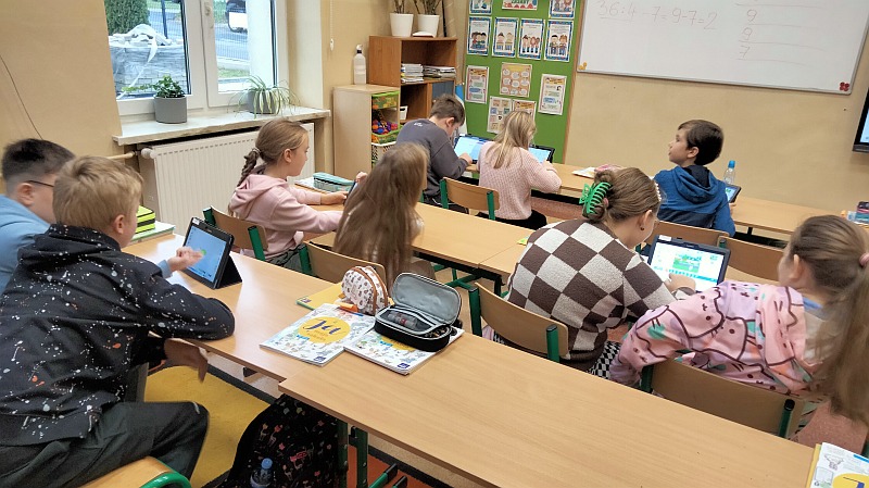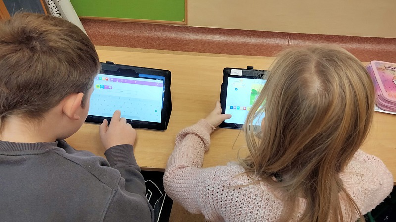 W zakresie tematyki programowania i kodowania pierwsze kroki stawiają już uczniowie klasy drugiej – uczestnicy zajęć unijnych Projektu Edukacji włączającej.