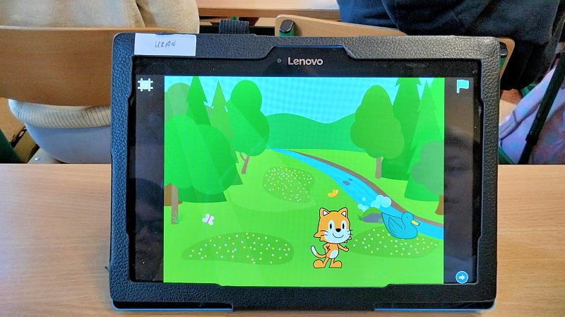 Obecnie jesteśmy na etapie poznawania i korzystania z narzędzi aplikacji Scratch Junior oraz tworzenia samodzielnych animacji w oparciu o wyzwanie pt.„Cztery pory roku”. Ten etap zajęć odbywających się w I półroczu ma na celu przygotowanie uczniów do realizacji tematyki z zakresu robotyki z wykorzystaniem tabletów i zestawów Klocków Lego WeDo.2.0.